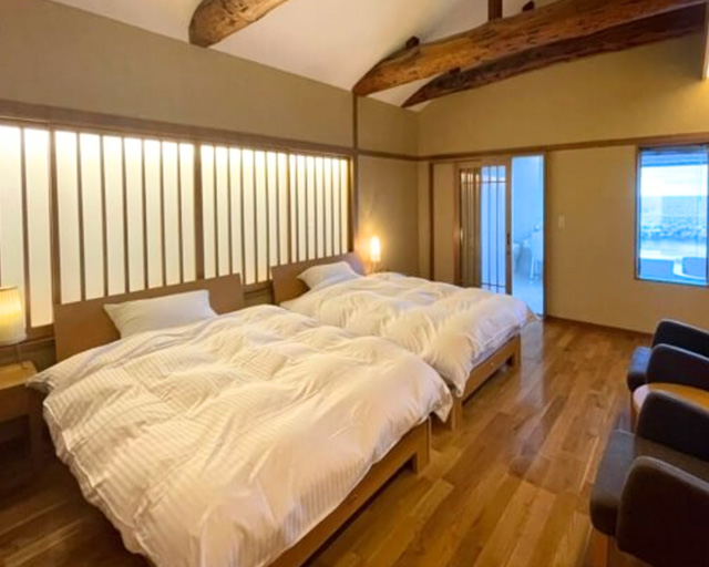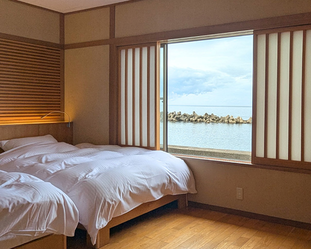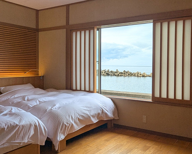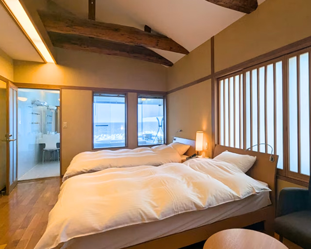 3組様限定だからこそ実現できる和モダンで静謐な空間、波の音だけが響く静けさの中、心ゆくまでお寛ぎください。