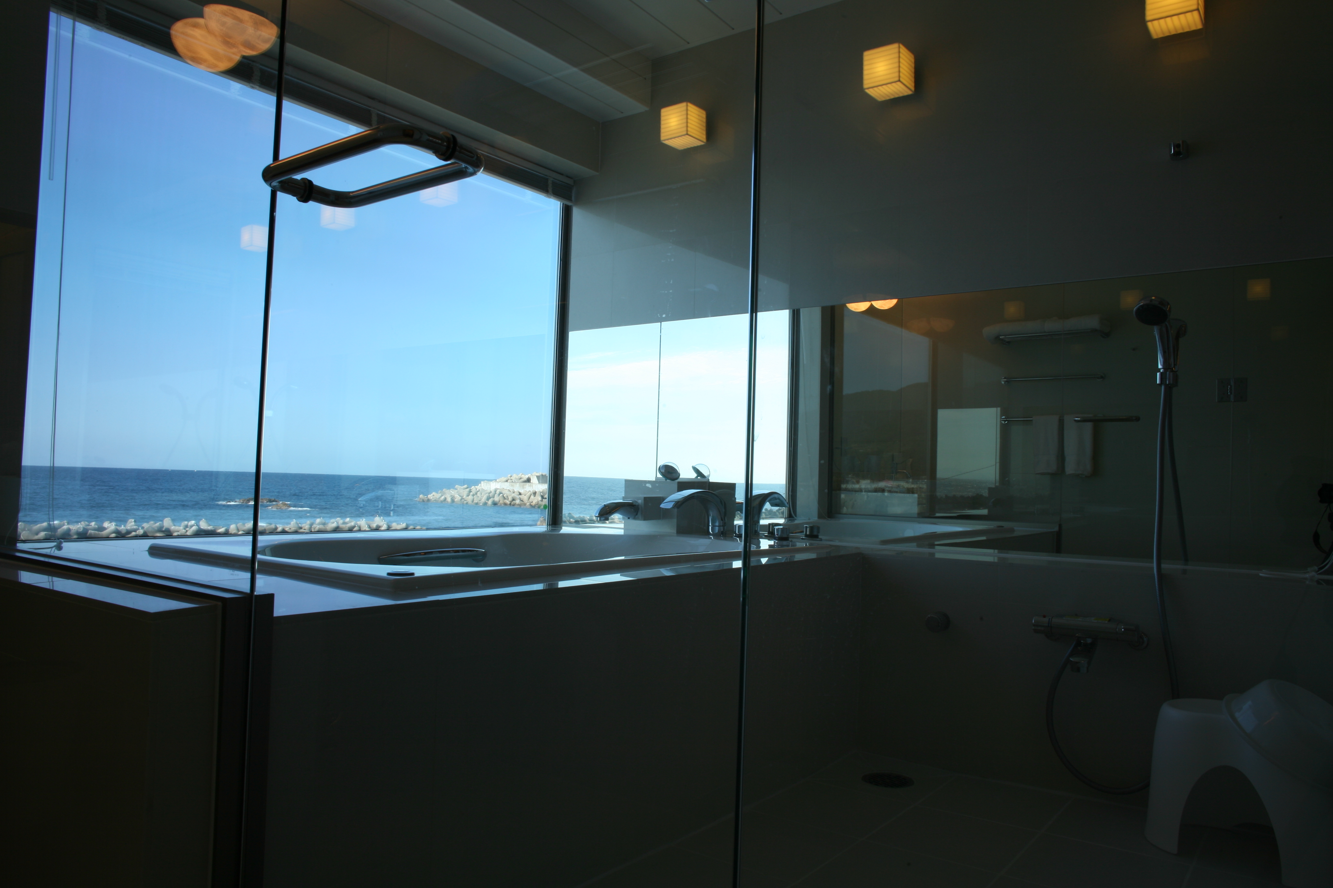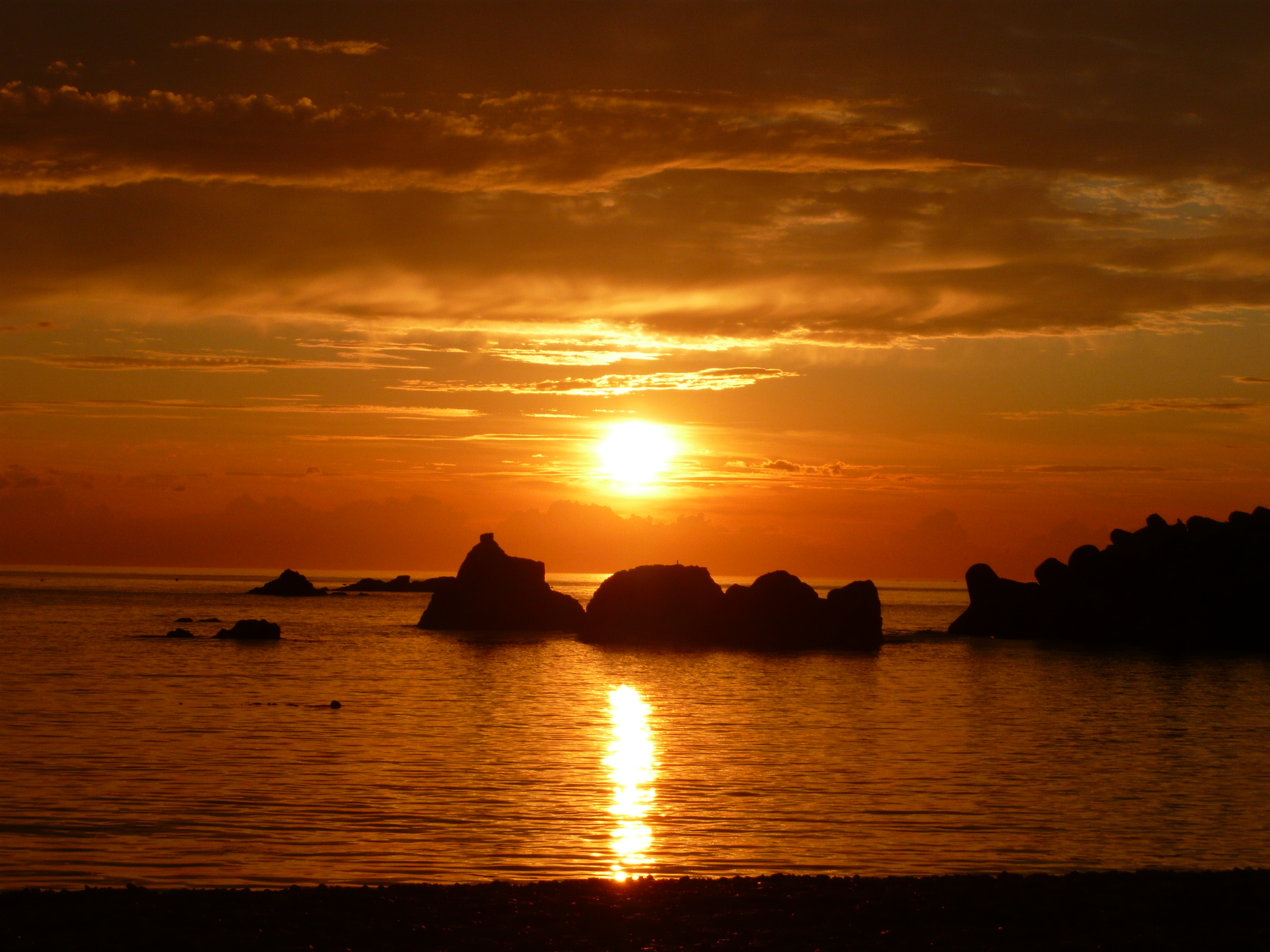 私たちの宿には別館がございます 2~3名専用のお部屋が3室あります高級寝具メーカー、シモンズ社のベッドで寝転がると窓から水平線が見えるように設計されています(自慢(v-v)y)お風呂からも海が見えるようにガラス張りになっています(外からは反射して中が見えないように施工してありますのでご安心を(v-v)y) お食事は各お部屋専用スペースをご用意テーブルは一枚板です(v-v)yこんな景色が見れる時もまります(春~秋ごろが多い印象です)ここは宿のすぐ後ろで砂利浜ですが海水浴もできます