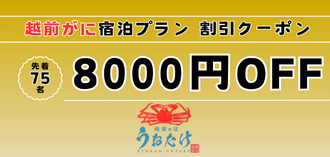 【数量限定】越前がにプラン 8000円割引クーポン 《先着75名》