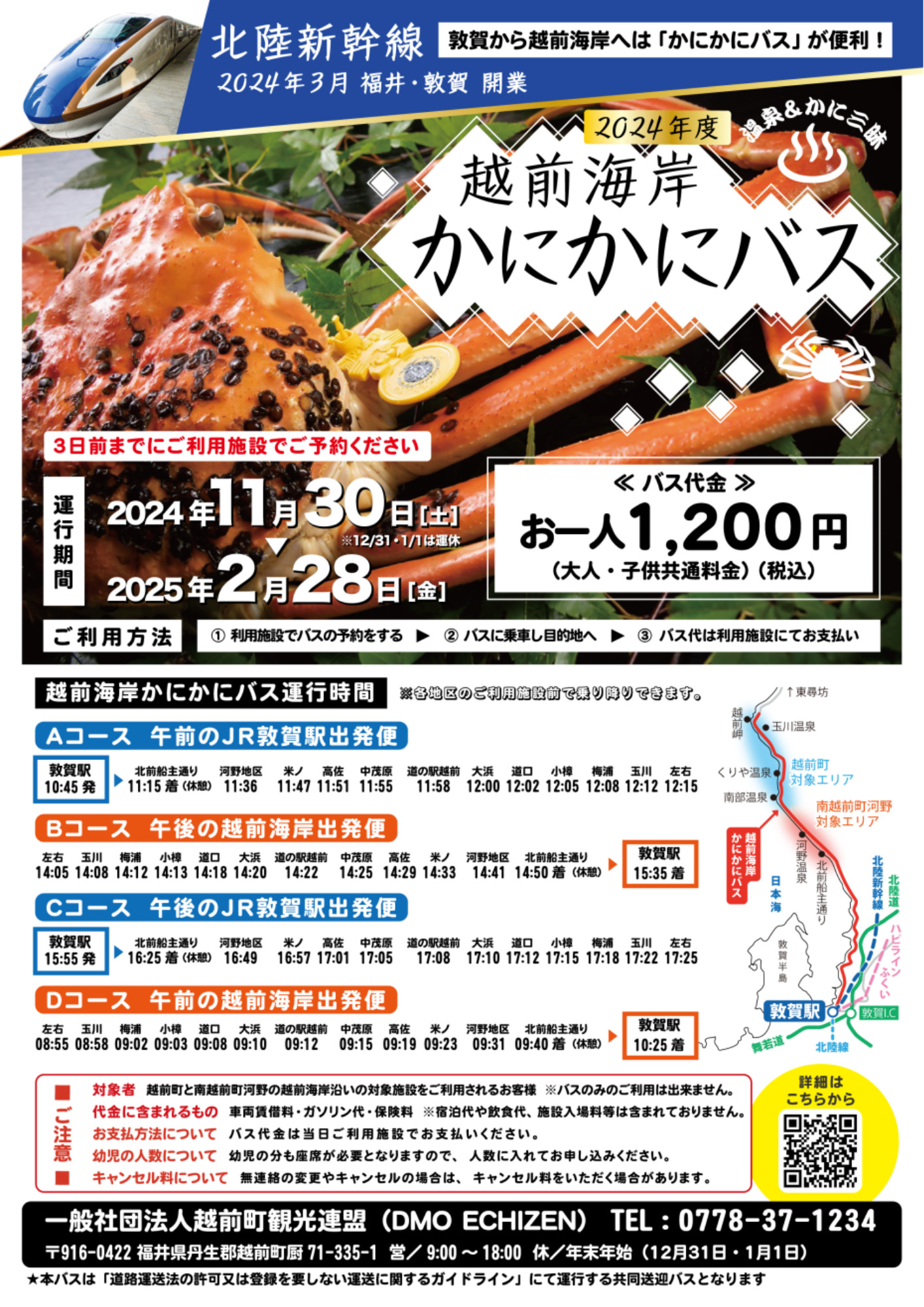 時間や乗り場、利用方法の詳しくはこちら→ 越前海岸かにかに号